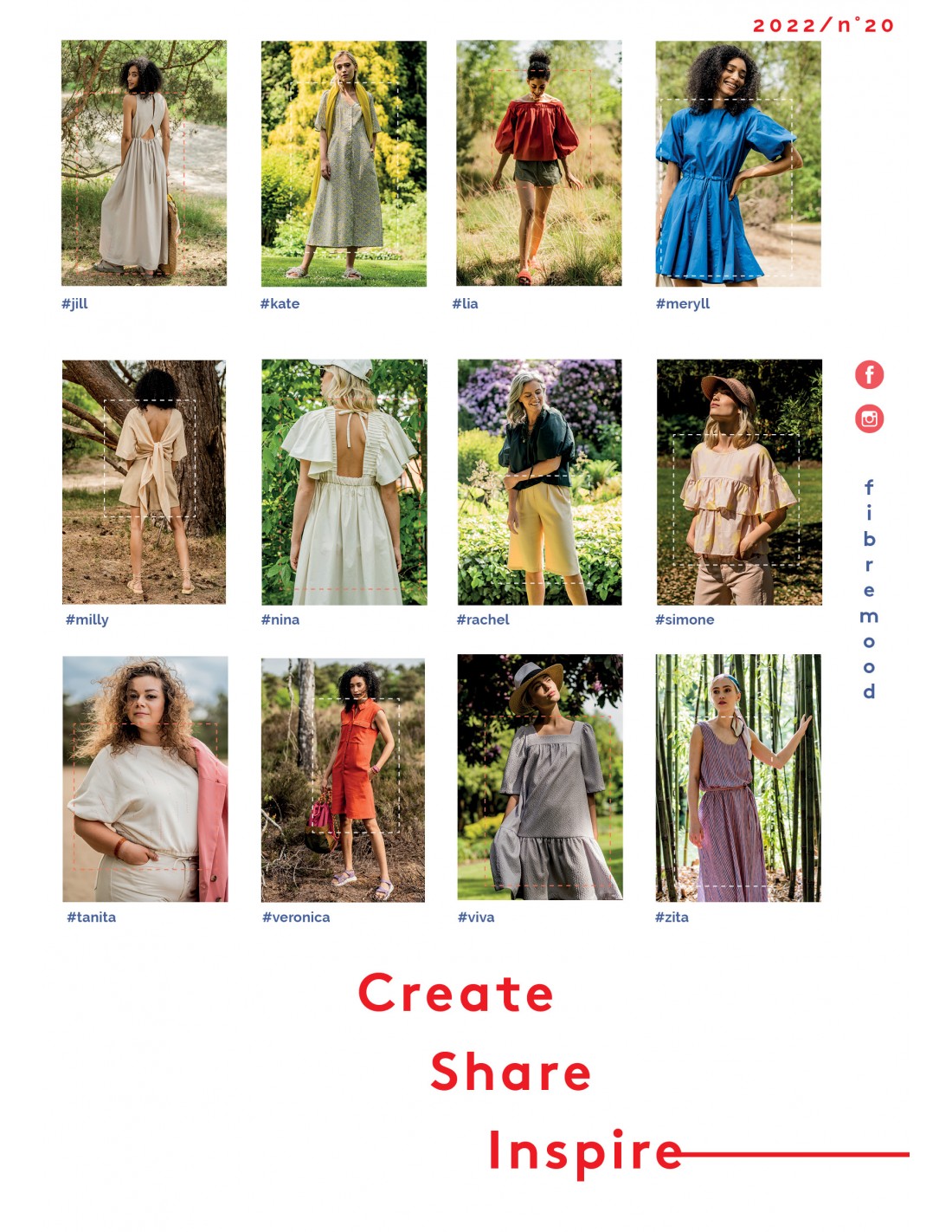 Dans ce numéro, vous trouverez Nina, Lia, Meryll, Milly, Jill, Veronica dress, Veronica jumpsuit, Viva, Rachel, Simone, Kate, Tanita, Zita