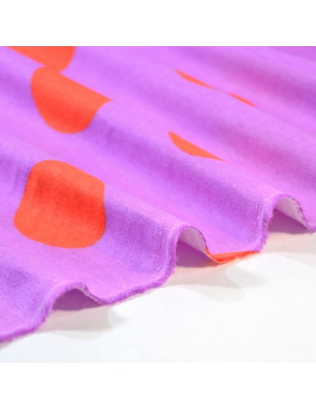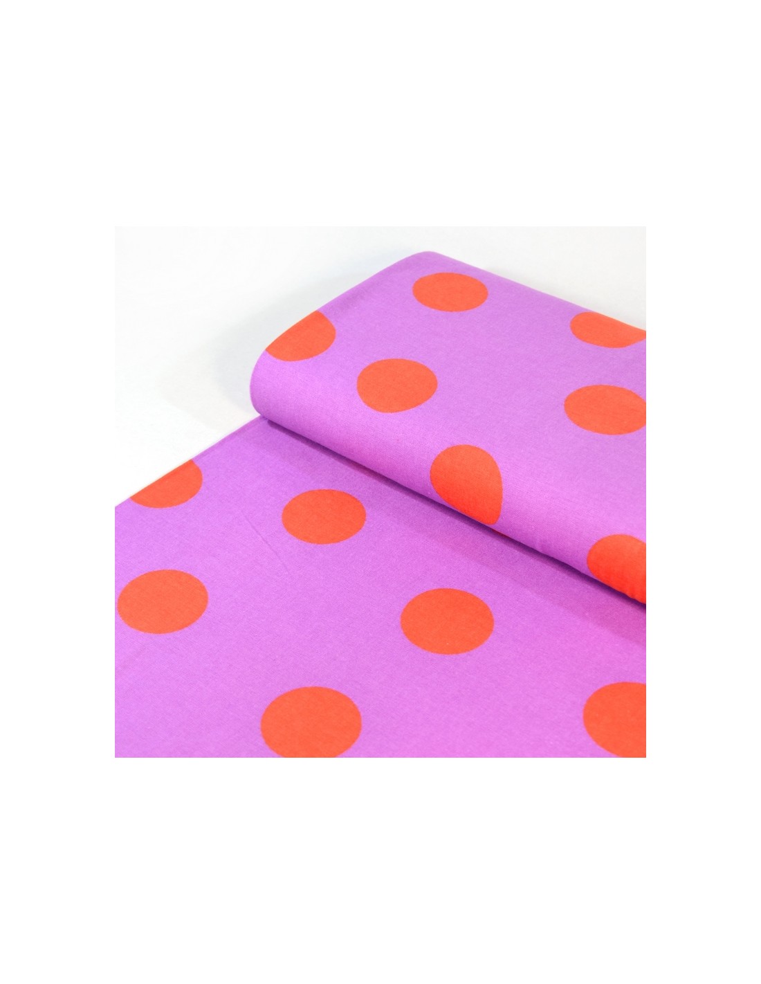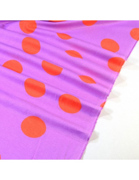 Jolie flanelle de coton à maxi pois oranges sur un fond lila.