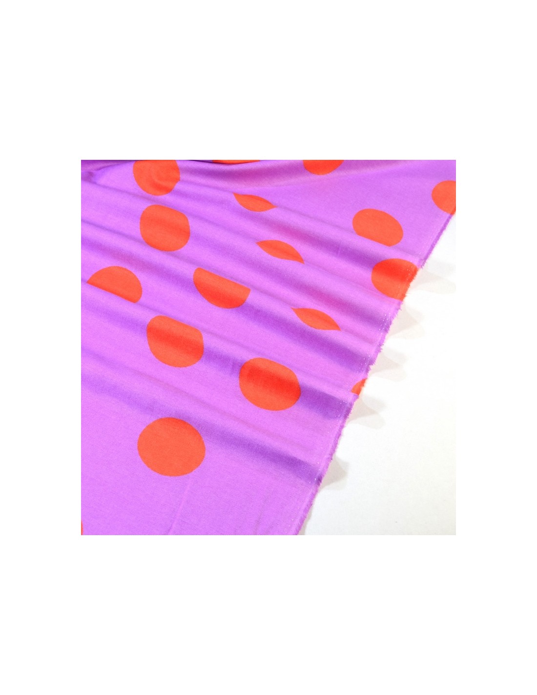 DERNIER COUPON 80CM - Tissu Flanelle - Gros Pois - Lila & Orange