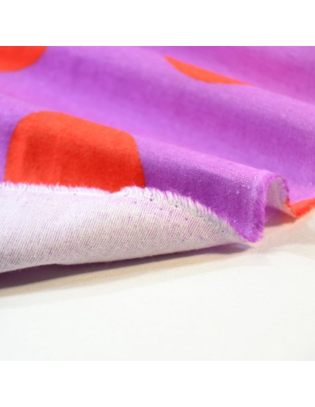 Tissu Flanelle - Gros Pois - Lila & Orange