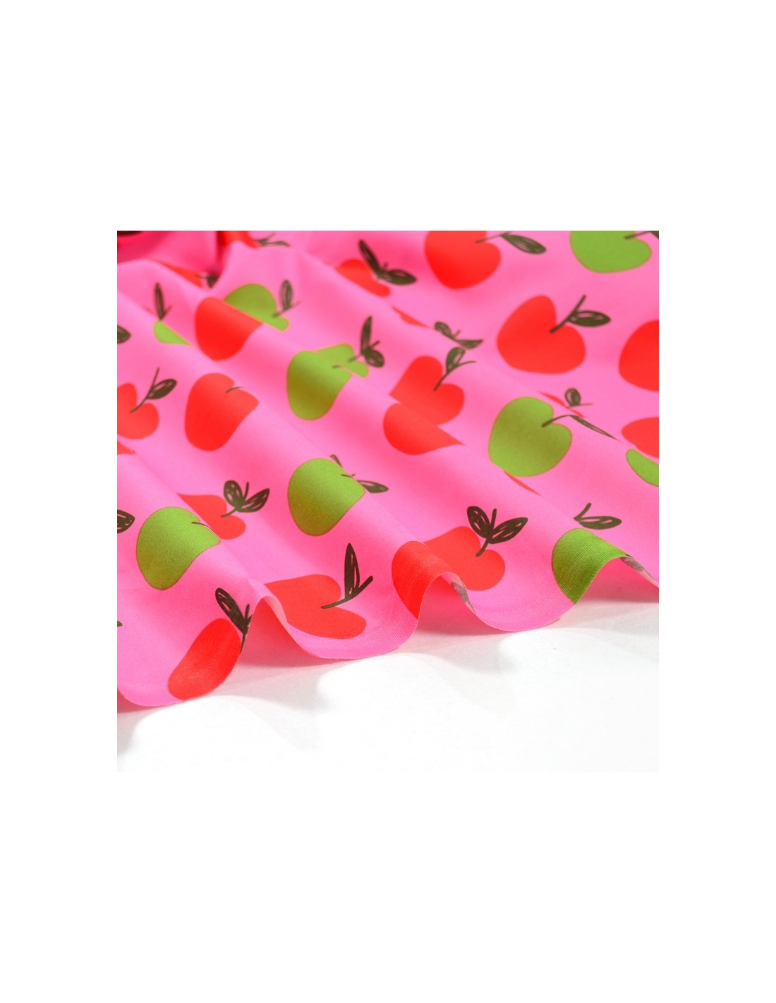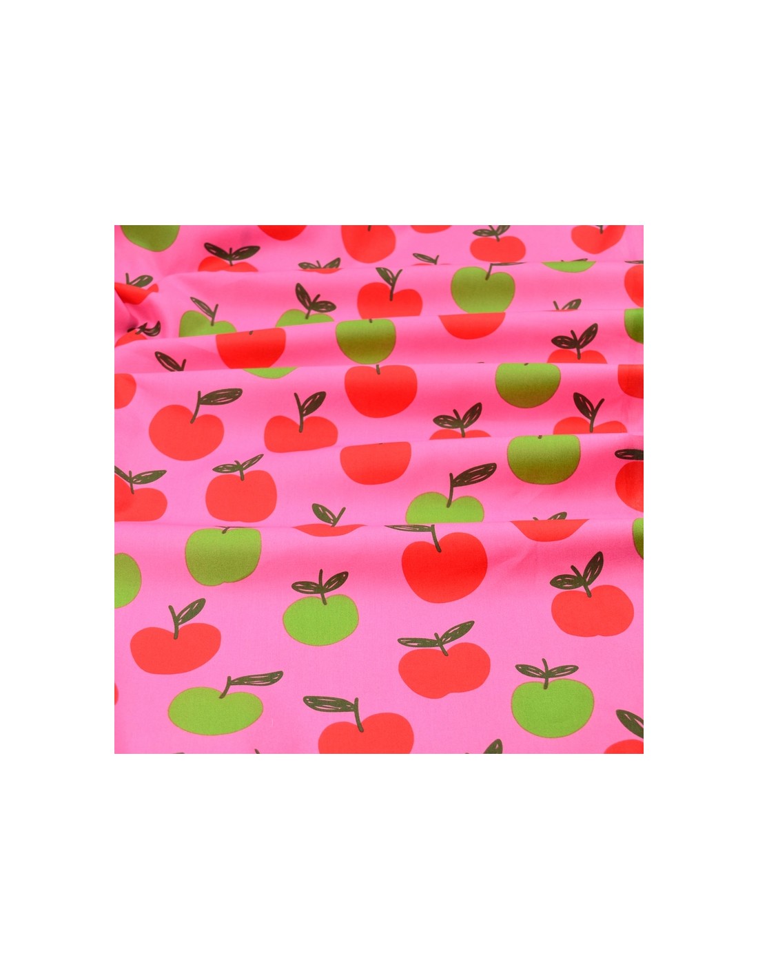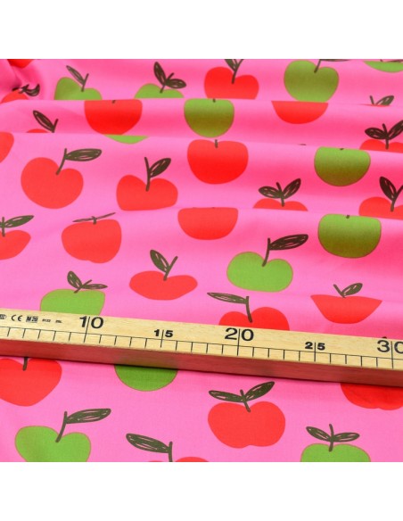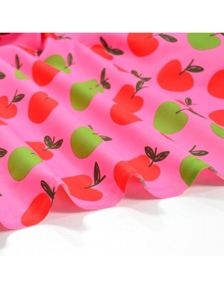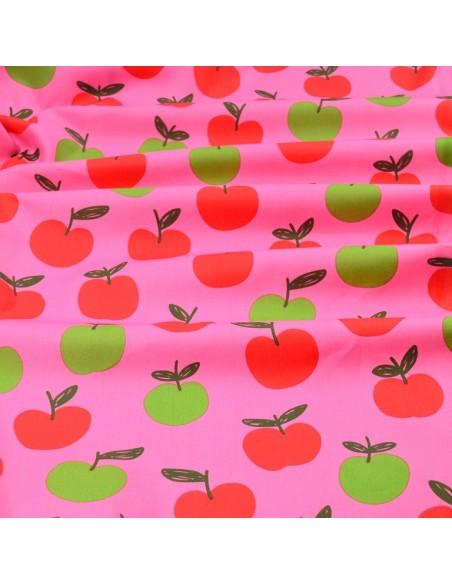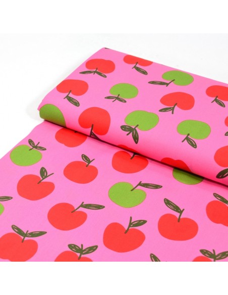 Tissu Popeline de Coton - Les Pommes - Rose & Vert