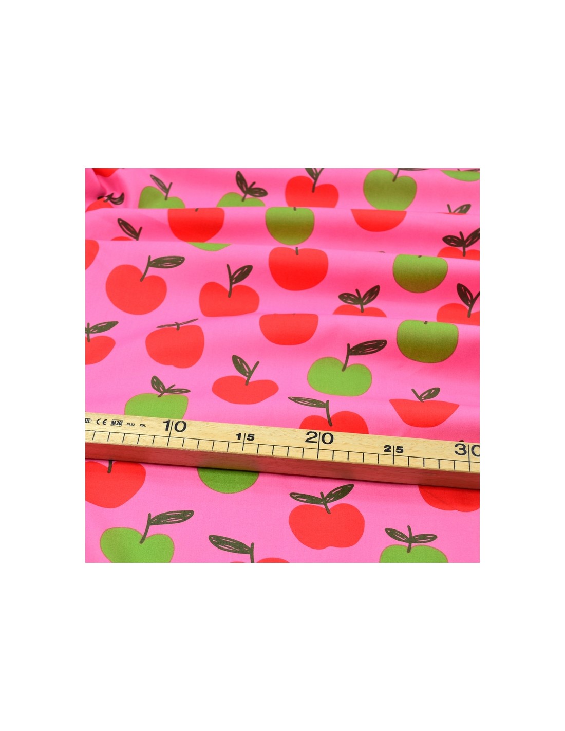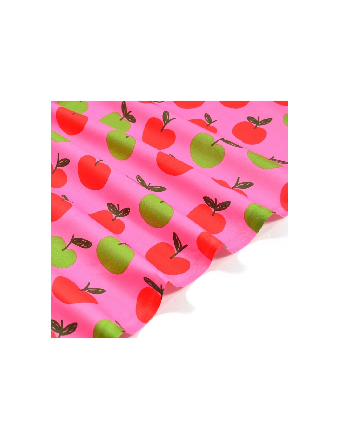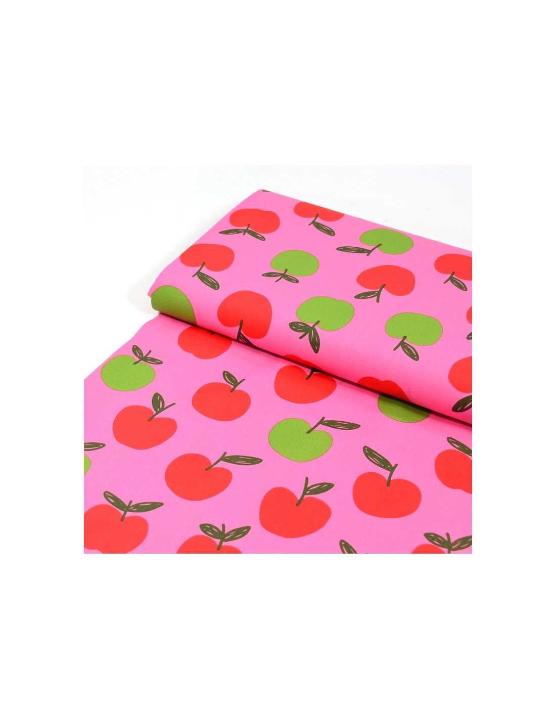 Tissu Popeline de Coton - Les Pommes - Rose & Vert