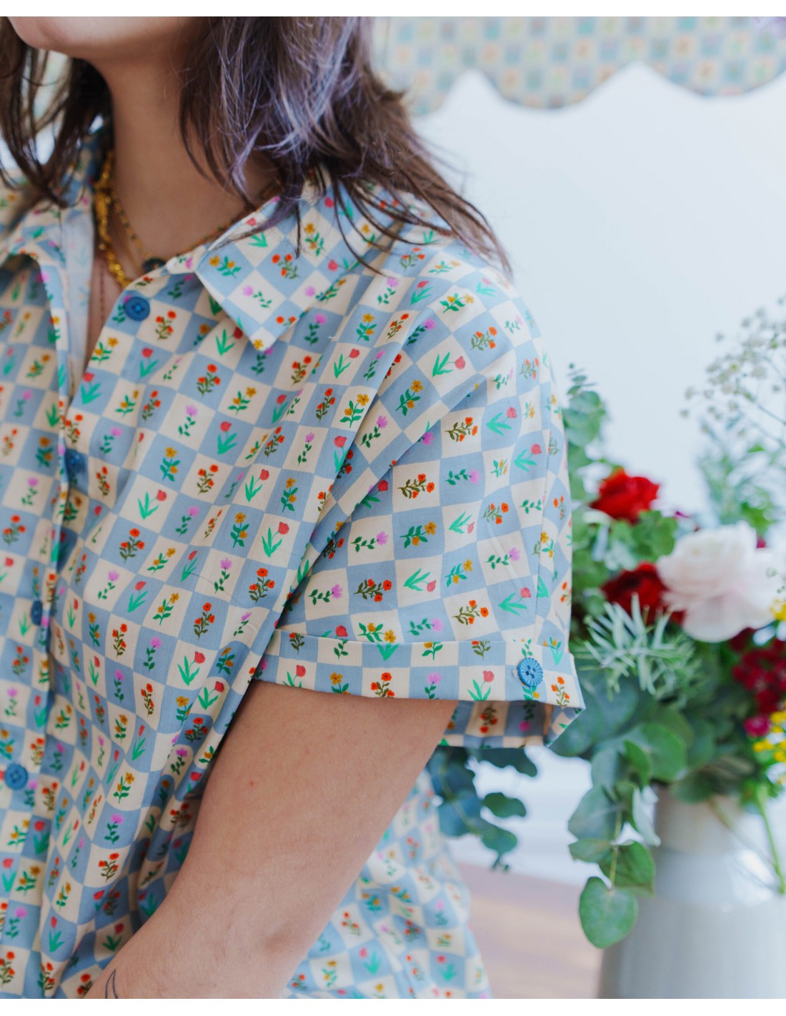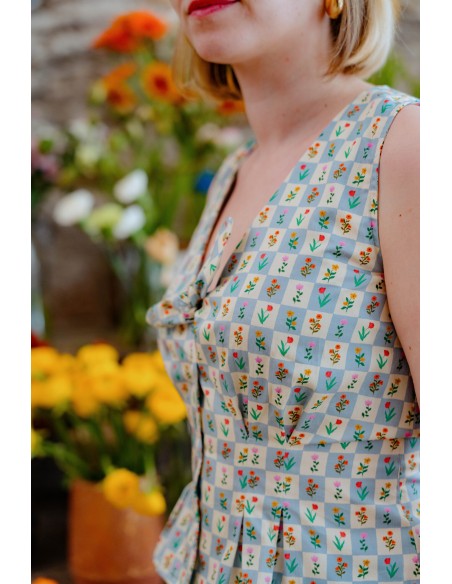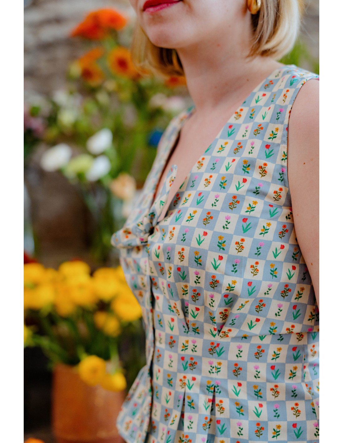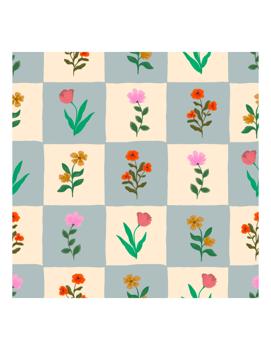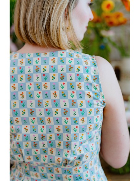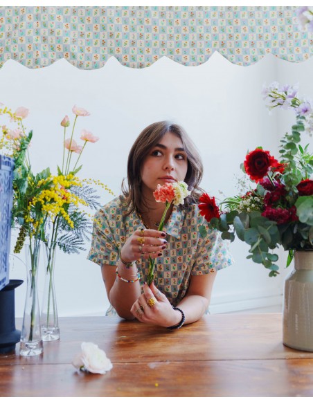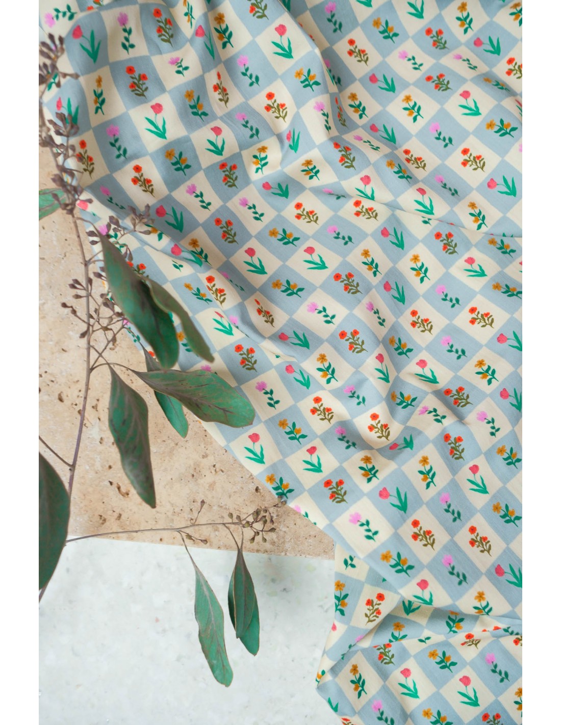 Satin de coton imprimé fleurs et damier de la marque française Lise Tailor