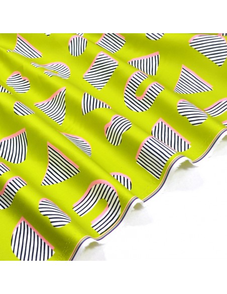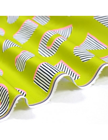 Ce tissu d'amour est une popeline de coton légèrement satinée, il a un joli drapé et une bonne tenue à la fois. L'effet satiné lui apporte une délicate brillance qui rend les couleurs encore plus lumineuses. Idéal pour réaliser robe, top, ou encore un pantalon léger.