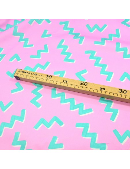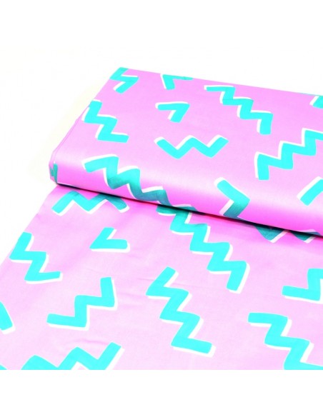Tissu Coton Satiné - Zag Pink - Molly Molly