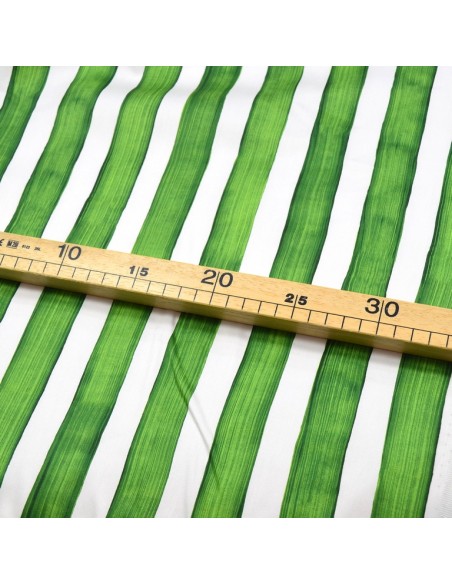 Tissu Coton Satiné - Painted Stripes - Olive and Cream - Molly Molly