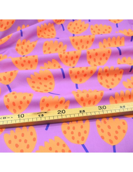 DERNIER COUPON 90CM - Tissu Popeline de Coton - Tulips - Lavender - Nerida Hansen