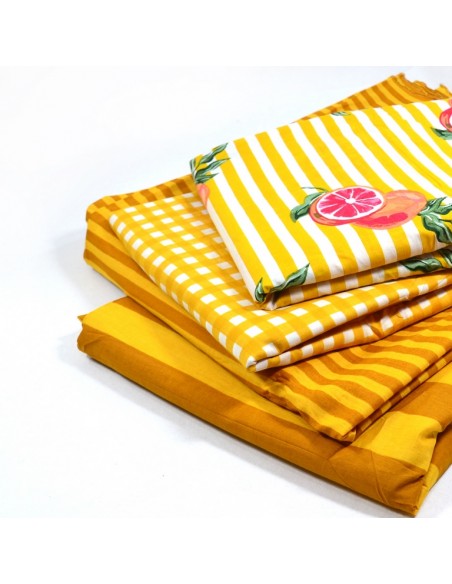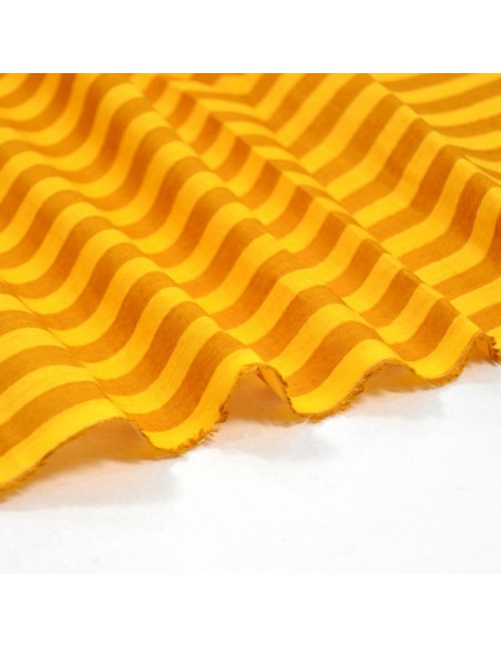 Tissu Coton Indien - Petites Rayures - Beurre et Moutarde