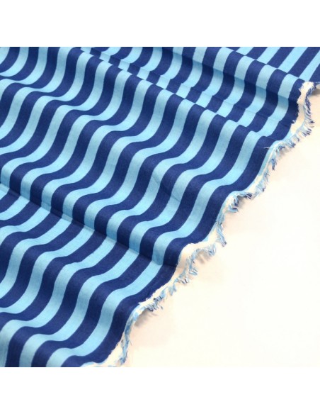 DERNIERS COUPONS - Tissu Coton Indien - Petites Rayures - Bleu