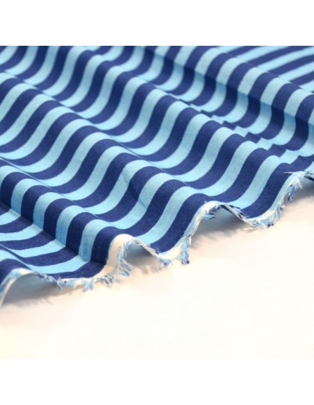 Tissu Coton Indien - Petites Rayures - Bleu