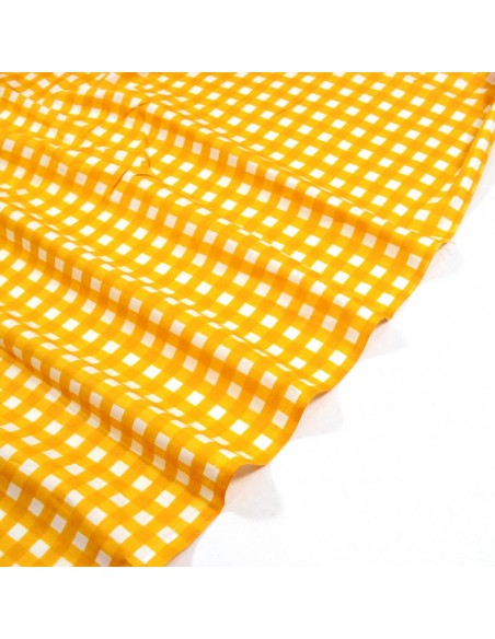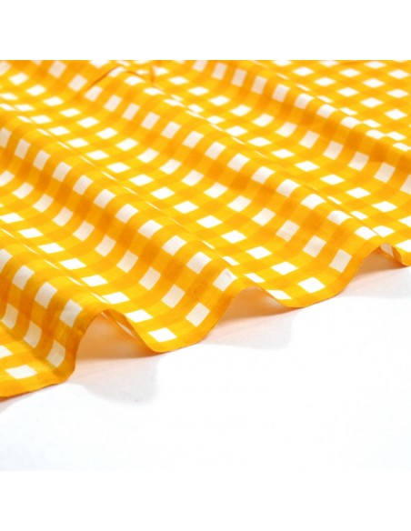 DERNIER COUPON 130CM - Tissu Coton Indien - Carreaux - Ocre