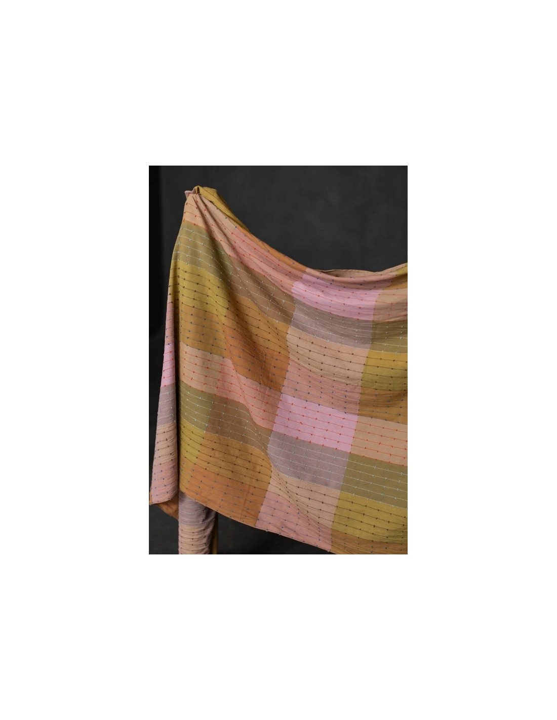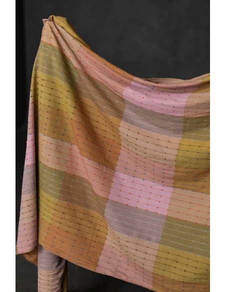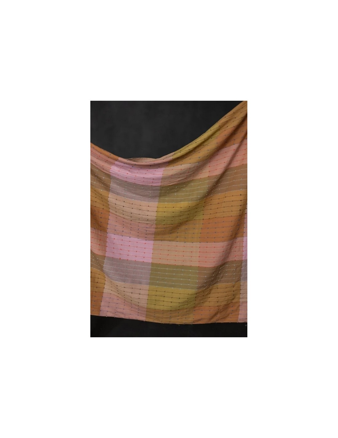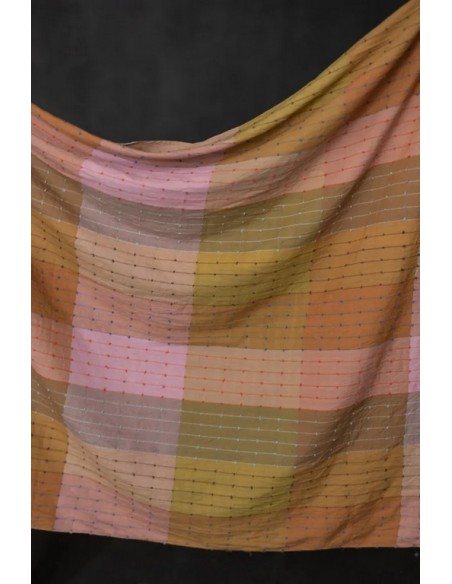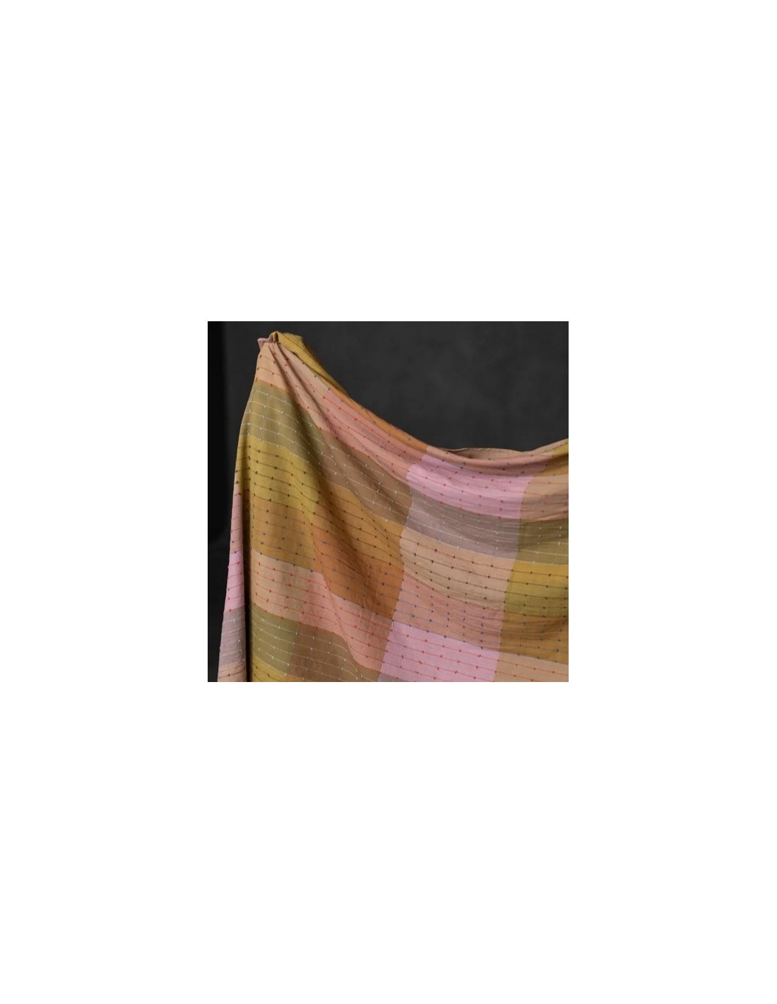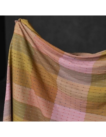 Coton indien à grands carreaux, rehaussés par un tissage de lignes de boucles colorées.