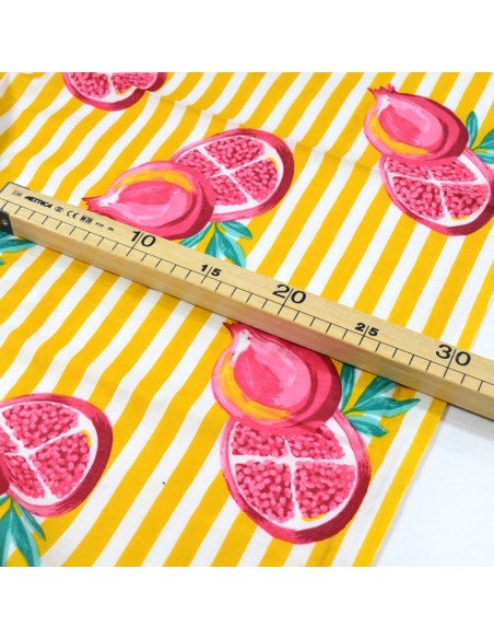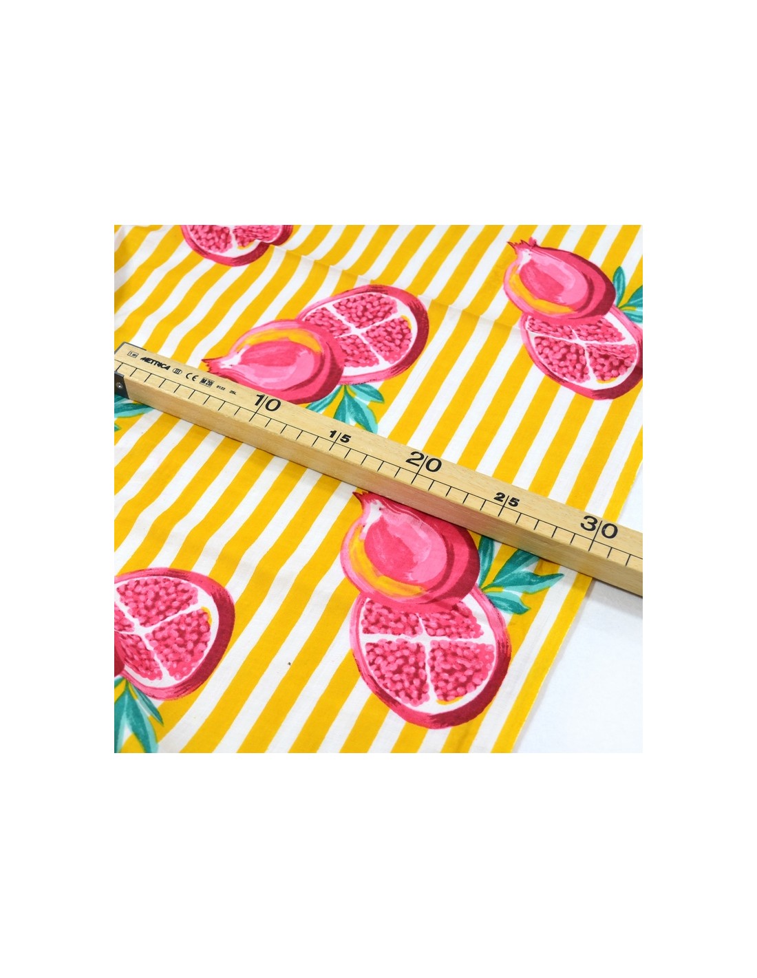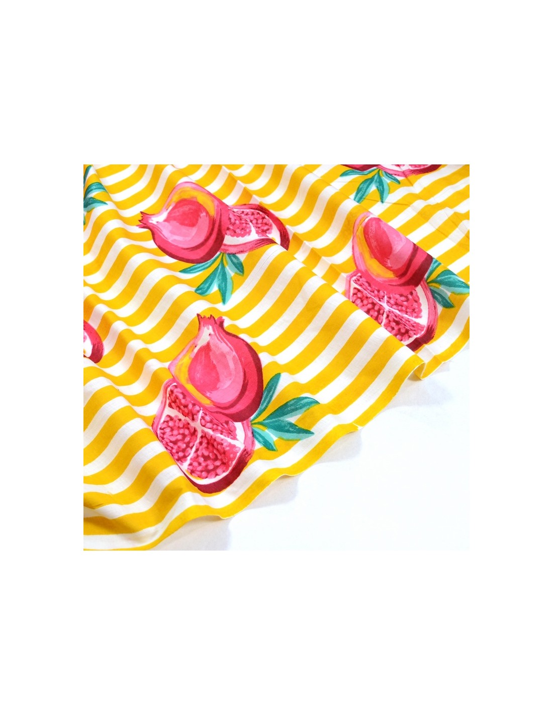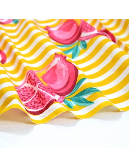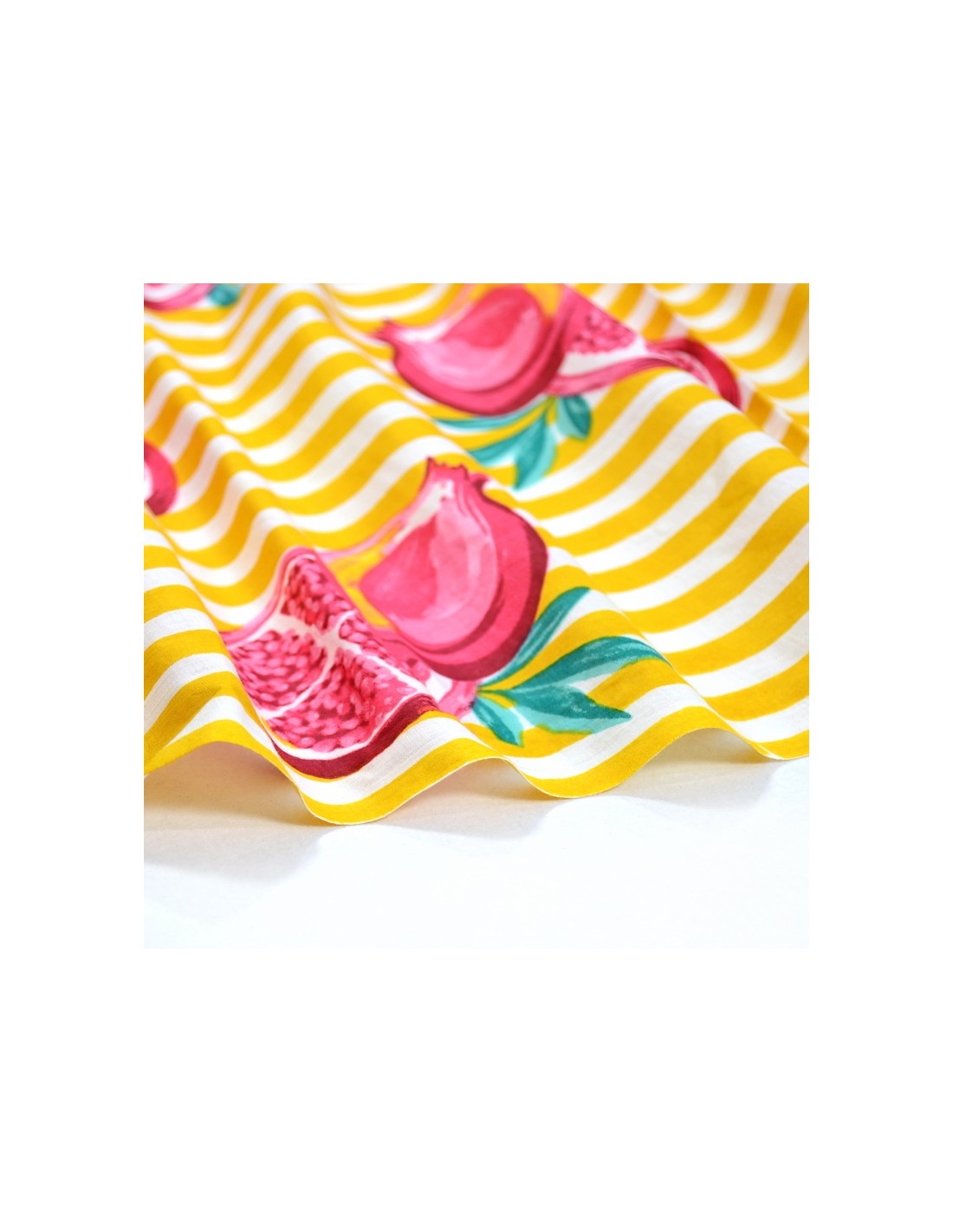 Tissu Coton Indien - Rayures et Grenades - Jaune