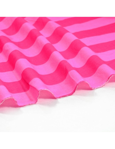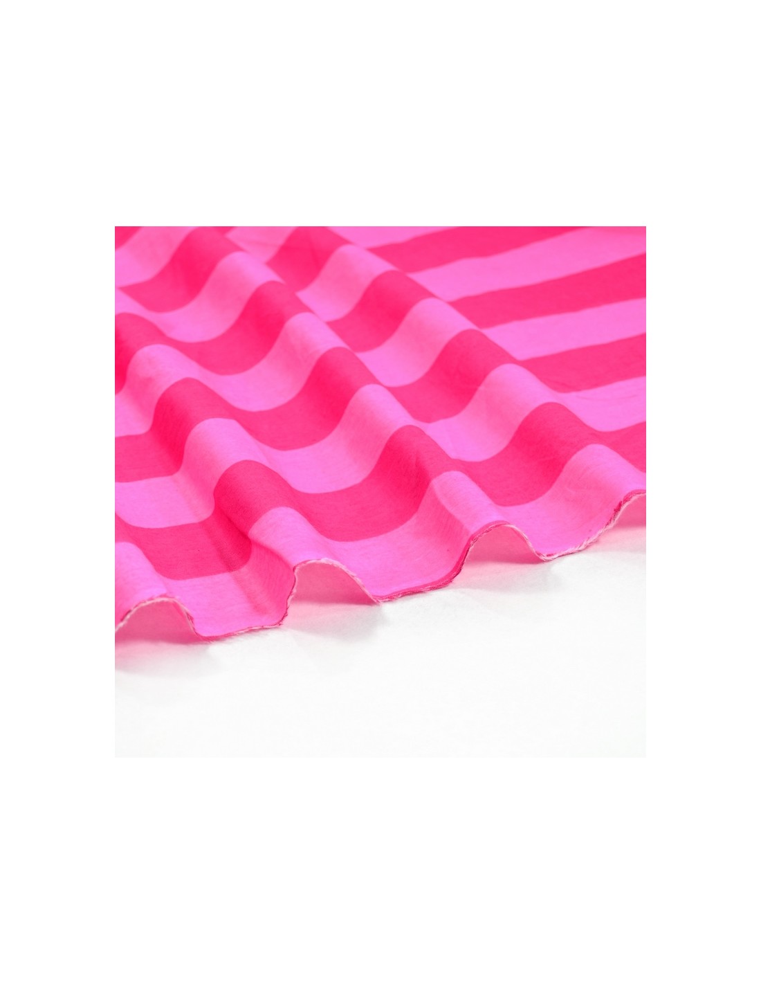 RÉSERVÉ - COUPON 110CM - Tissu Coton Indien - Grosses Rayures - Rose Rose