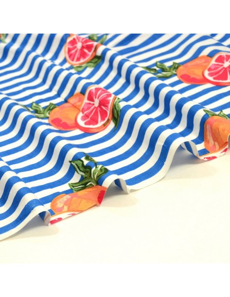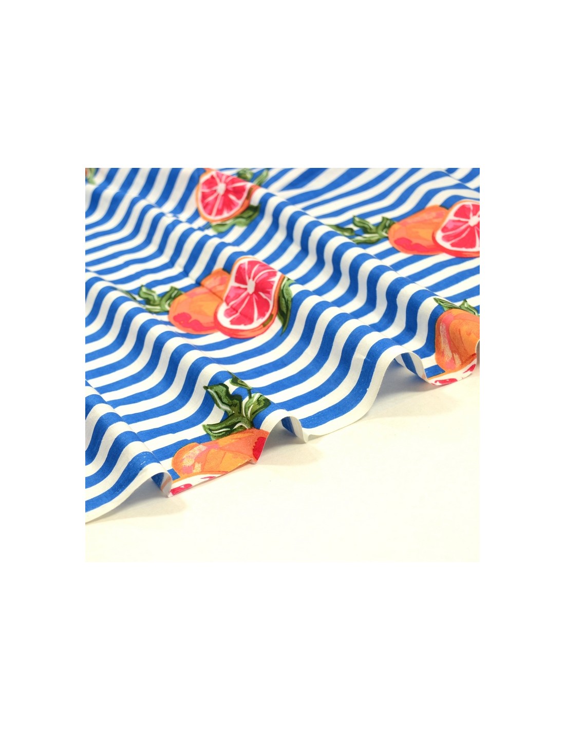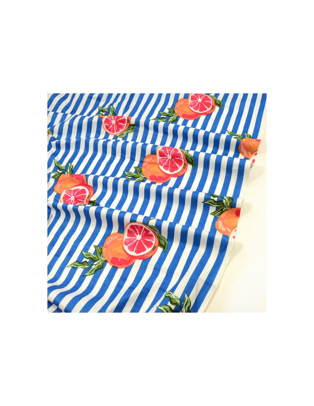 Tissu Coton Indien - Rayures et Pomelos - Bleu