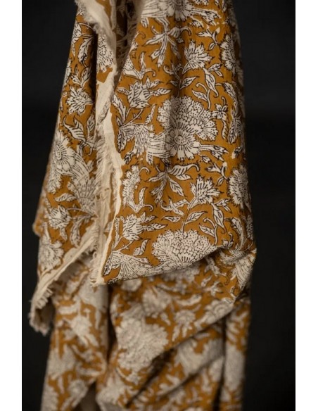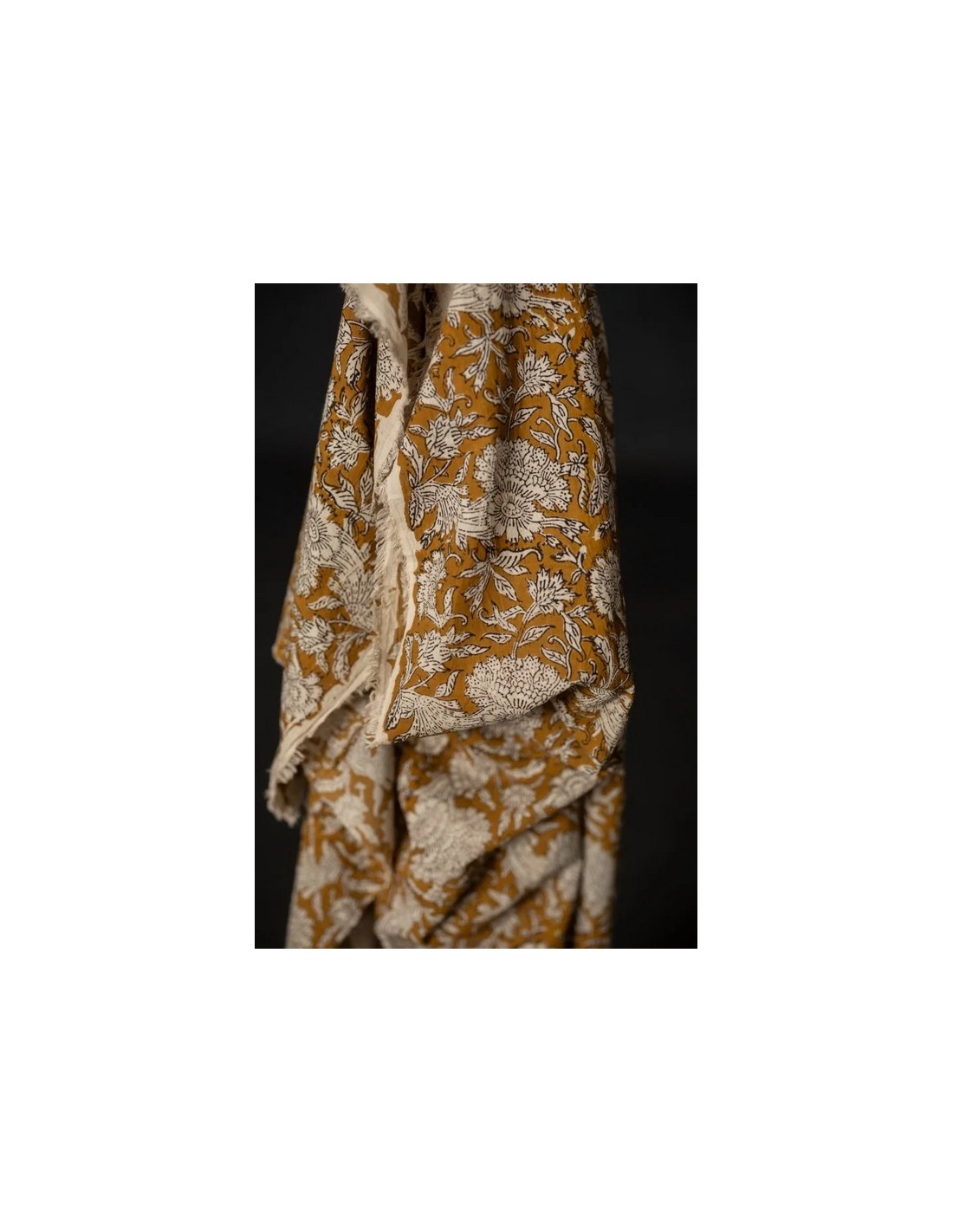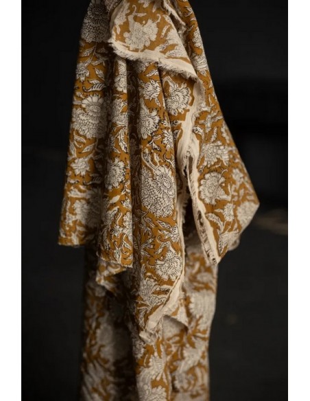 DERNIER COUPON 220CM - Tissu Coton Indien - Block Print - Mustard Carnation - Merchant & Mills