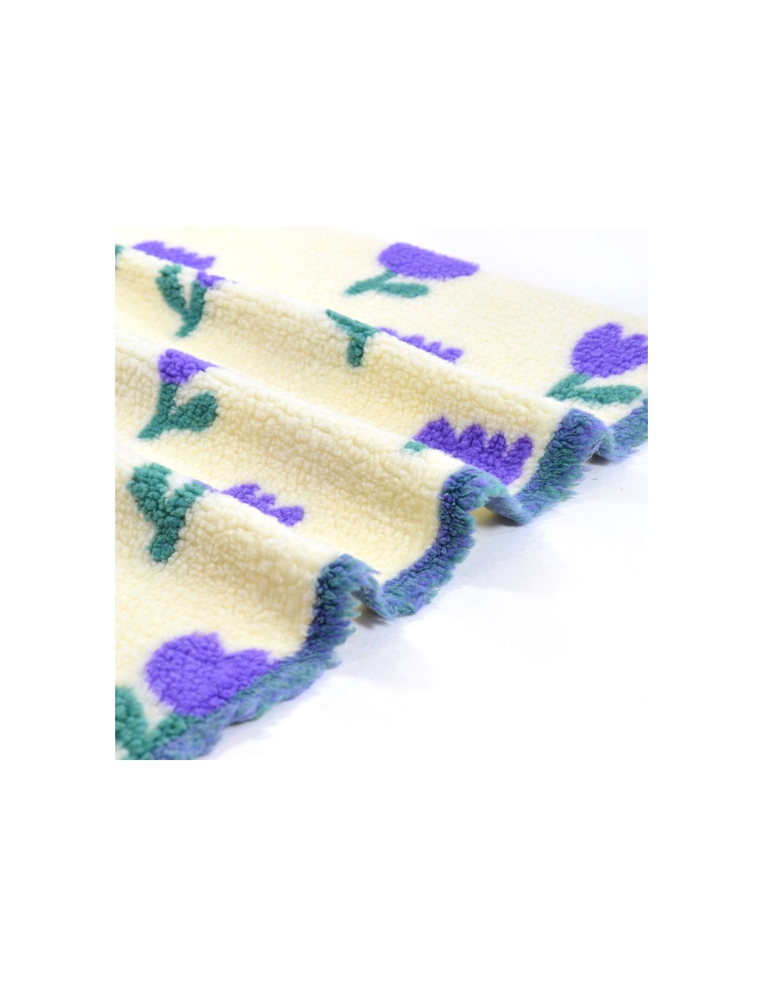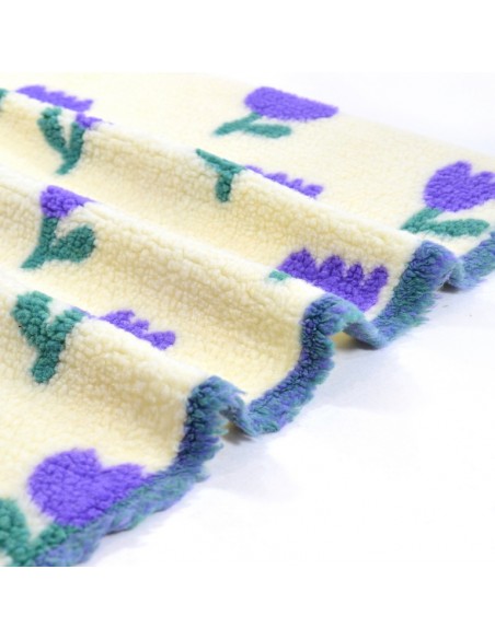 COUPON 65CM - Tissu Teddy Moumoute - Tulipes - Ecru