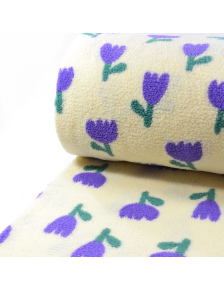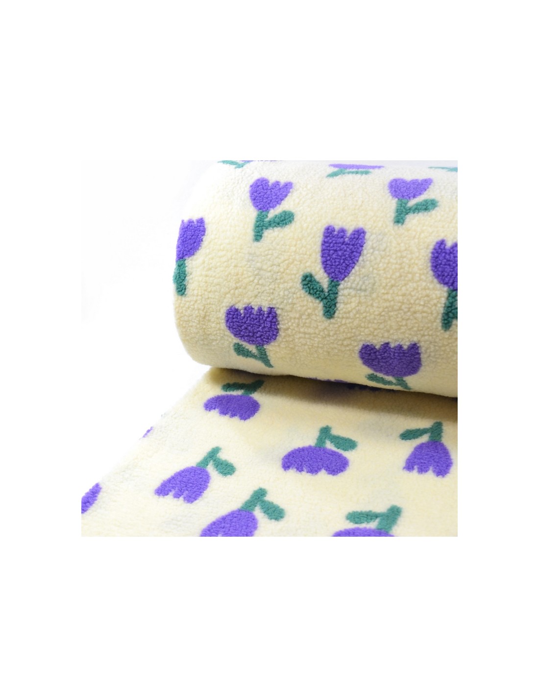 Tissu Teddy Moumoute - Tulipes - Ecru