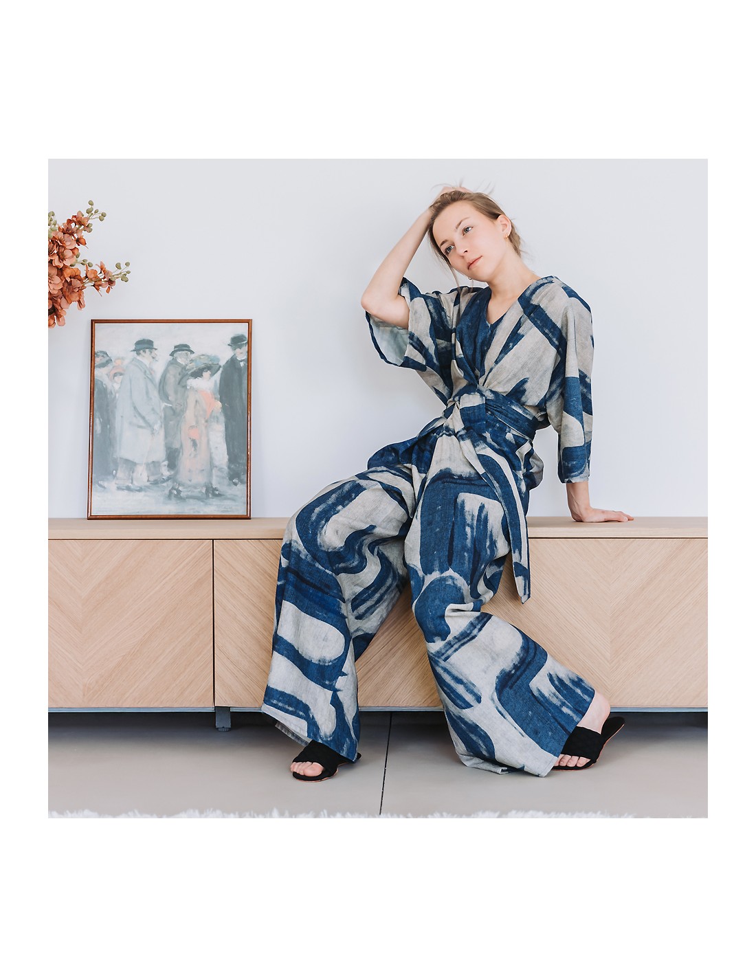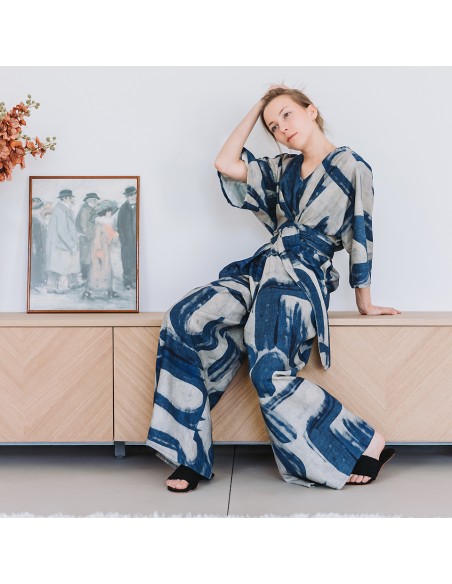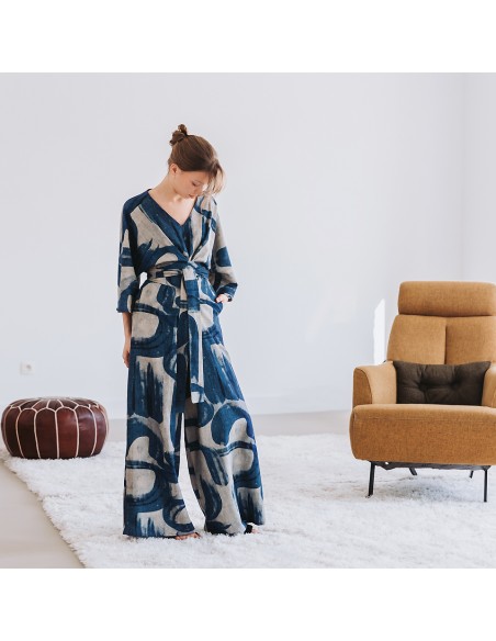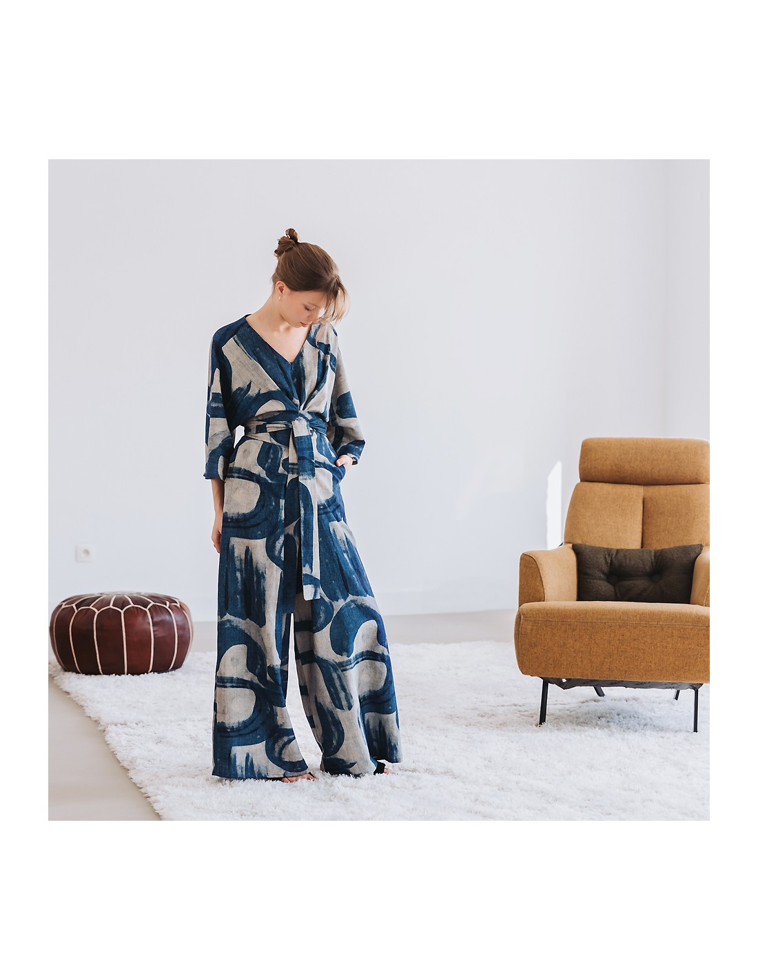 Ce tissu est un mélange de lin et de viscose : le lin lui apporte le toucher naturel que l'on aime tant, et la viscose lui apporte douceur et fluidité.