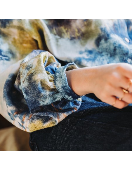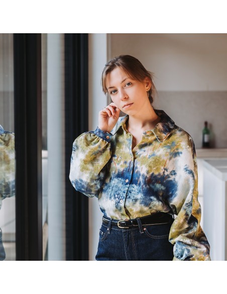 Ce tissu est un mélange de lin et de viscose : le lin lui apporte le toucher naturel que l'on aime tant, et la viscose lui apporte douceur et fluidité.