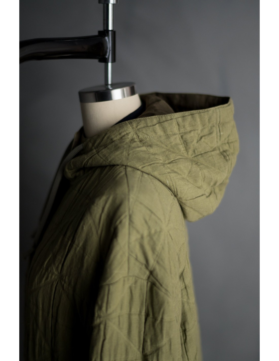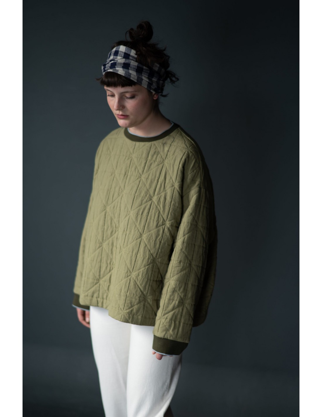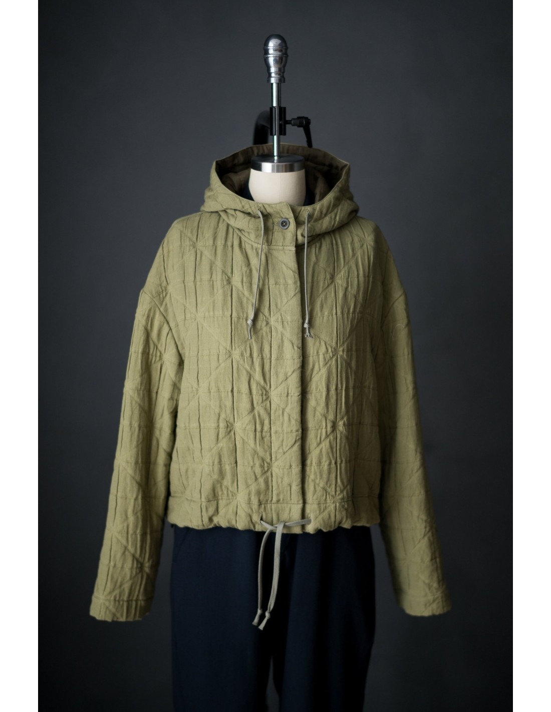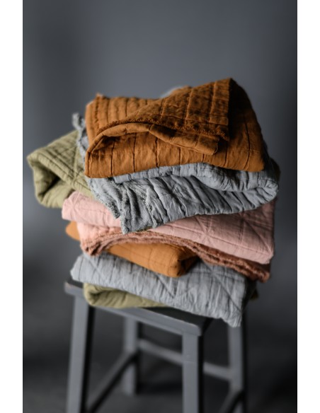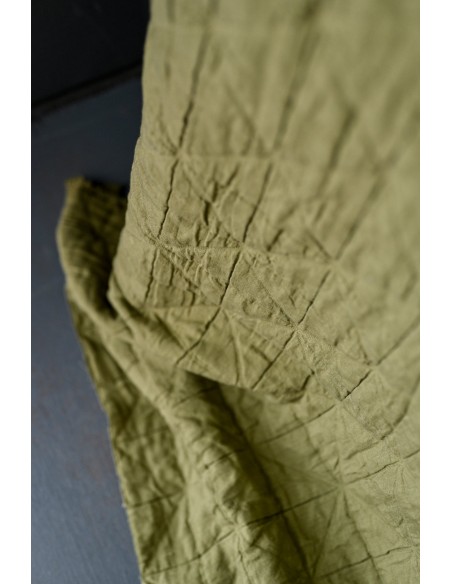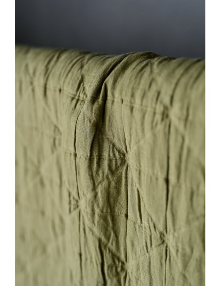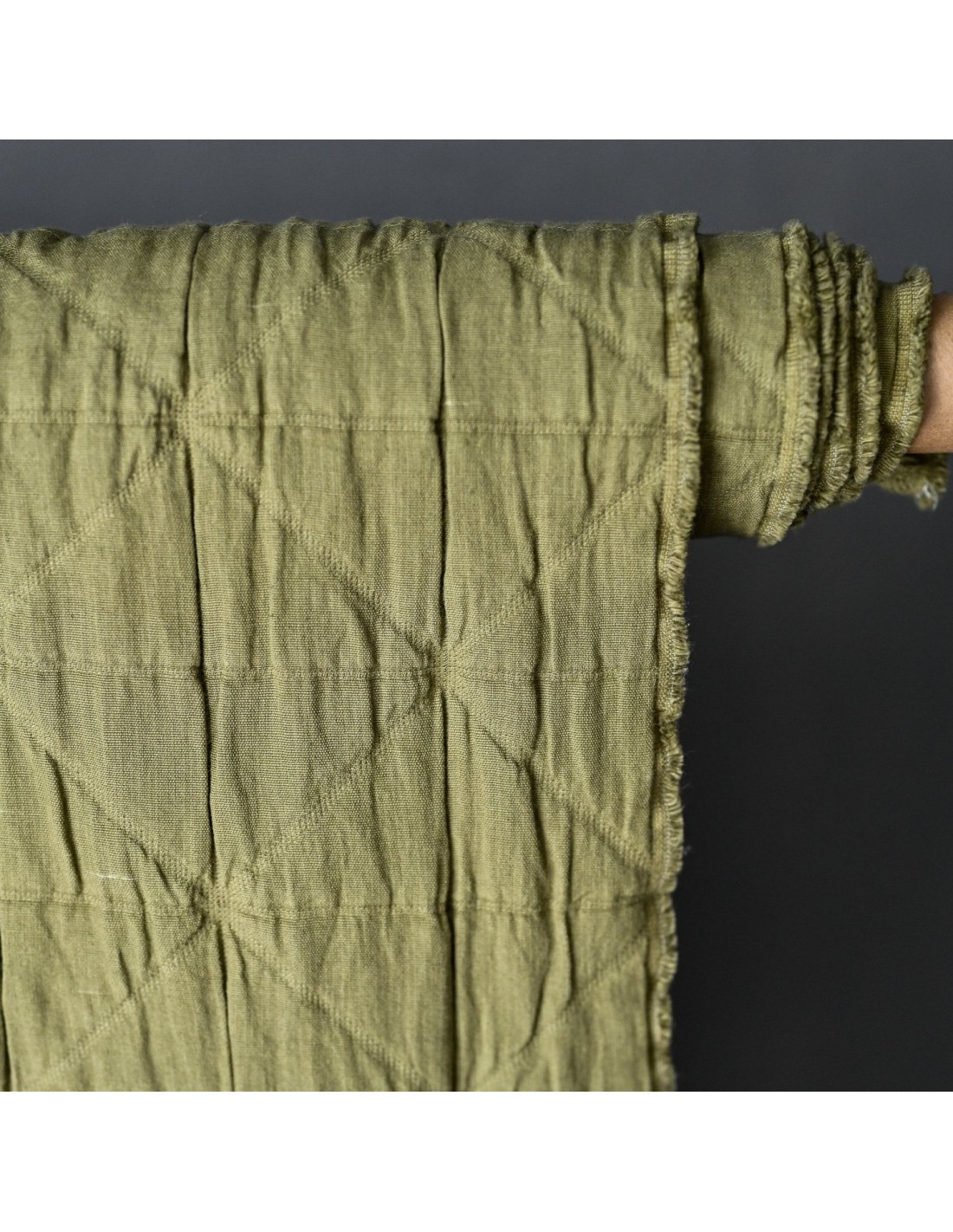 Plusieurs couches de coton se superposent et le tissage selon la technique du Jacquard lui donne son aspect matelassé, avec un effet de carrés / triangles so so coocool. L'endroit est un coton fin et l'envers est une gaze de coton.