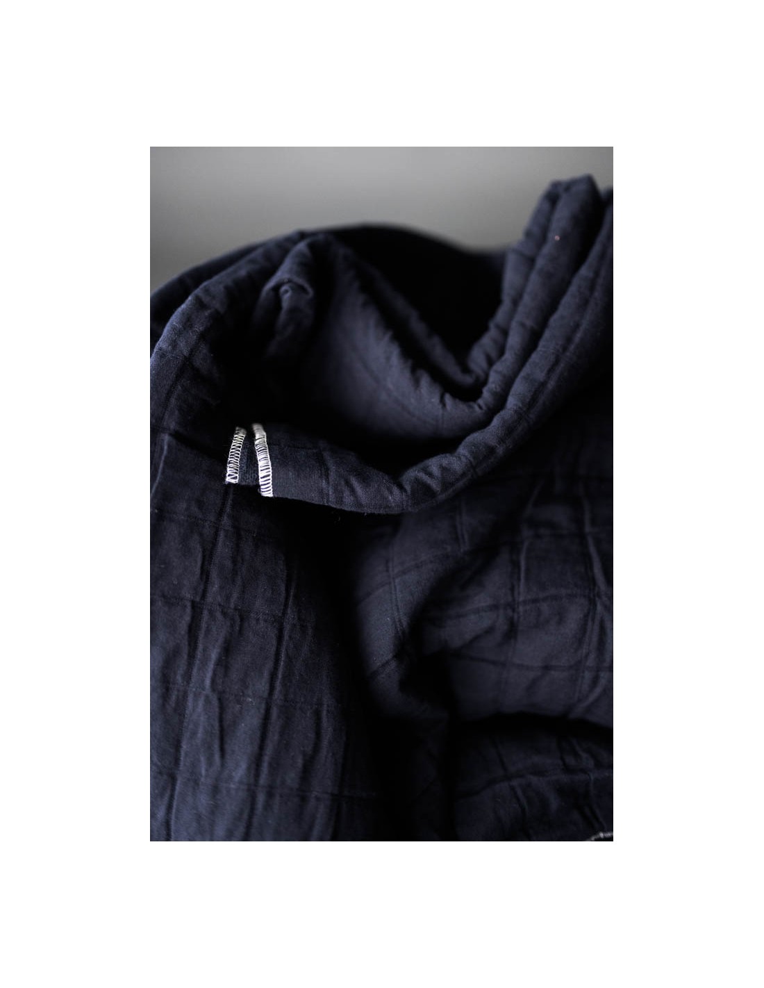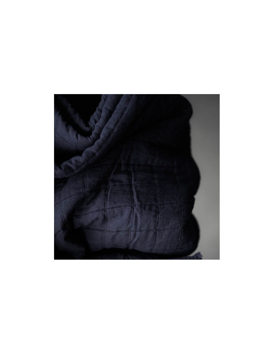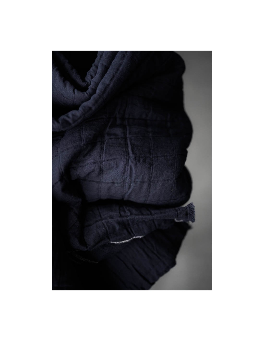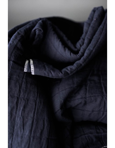 Plusieurs couches de coton se superposent et le tissage selon la technique du Jacquard lui donne son aspect matelassé. L'endroit est un coton fin et l'envers est une gaze de coton.