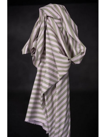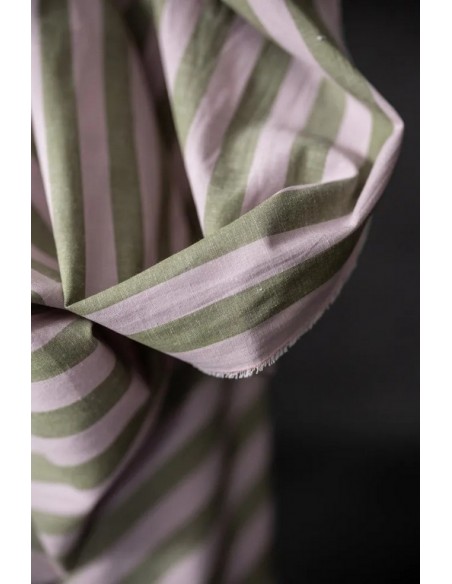 Un doux mélange de coton et de lin pour ce joli tissu à rayures verticales.